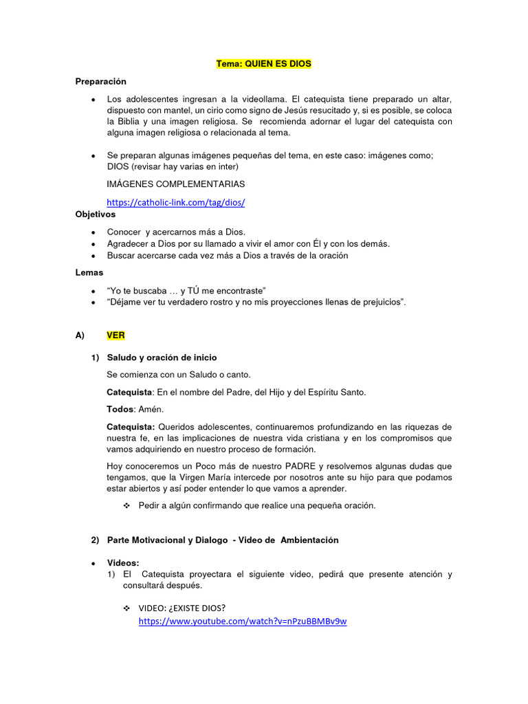 1) El Catequista proyectara el siguiente video, pedirá que presente atención y