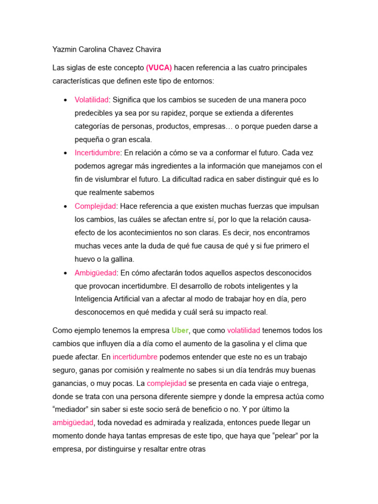 Las siglas de este concepto (VUCA) hacen referencia a las cuatro principales