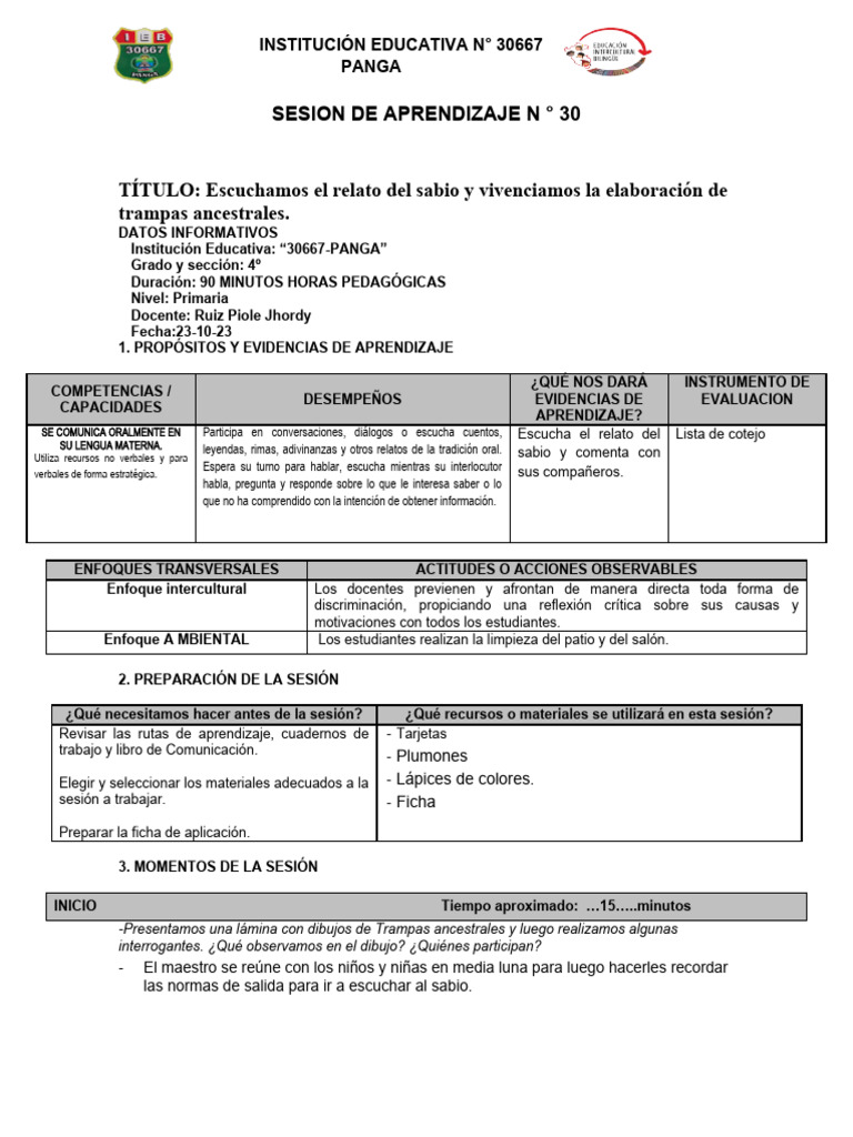 TÍTULO: Escuchamos el relato del sabio y vivenciamos la elaboración de