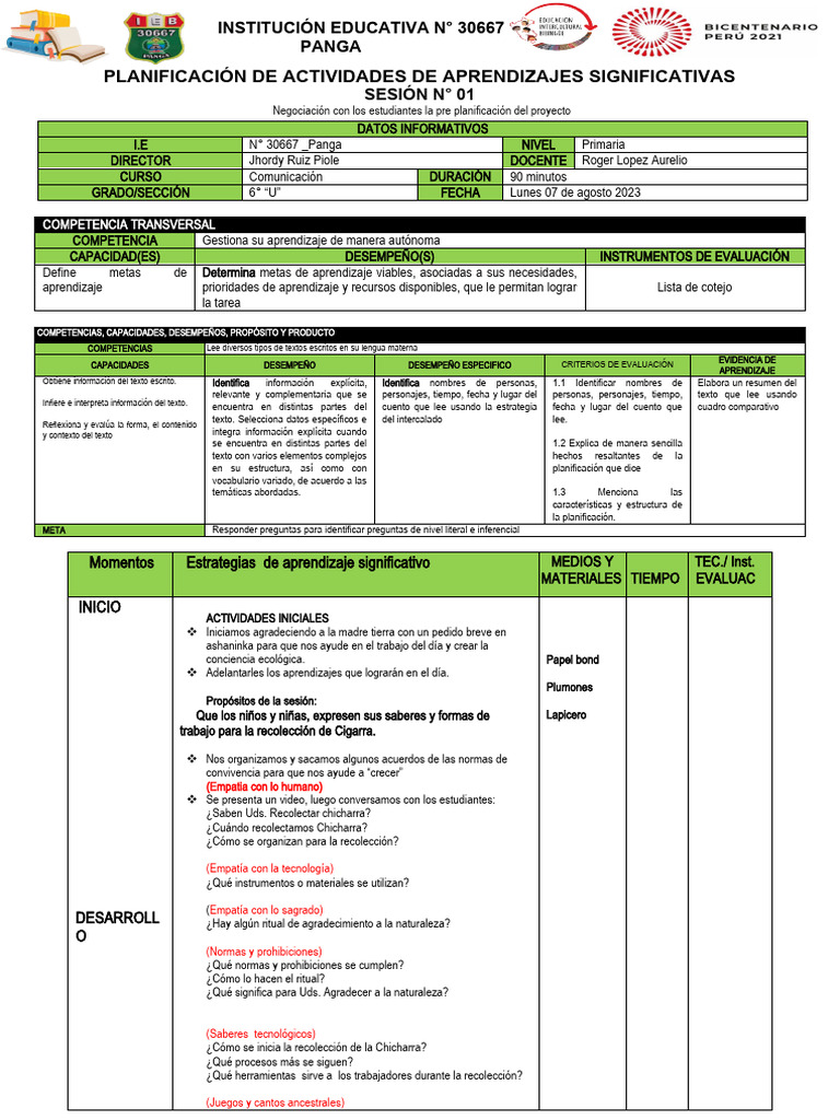DIRECTOR Jhordy Ruiz Piole DOCENTE Roger Lopez Aurelio