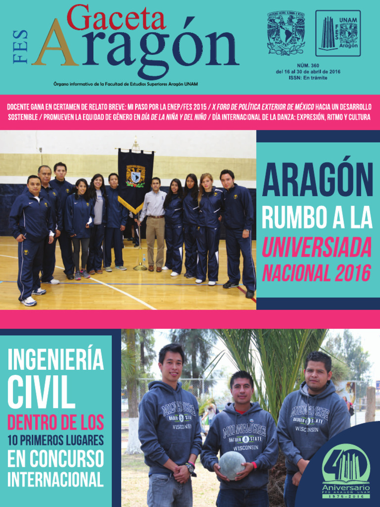 Alba María Medina Marín Gaceta FES Aragón, No. 360 (del 16 al 30 de abril de 2016), es una publicación quincenal, editada por la Universidad Nacional
