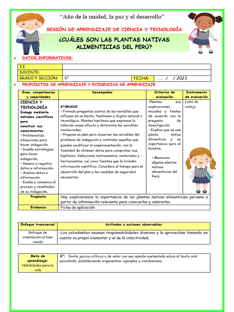 GRADO Y SECCIÓN: 6° FECHA: …… / / 2023