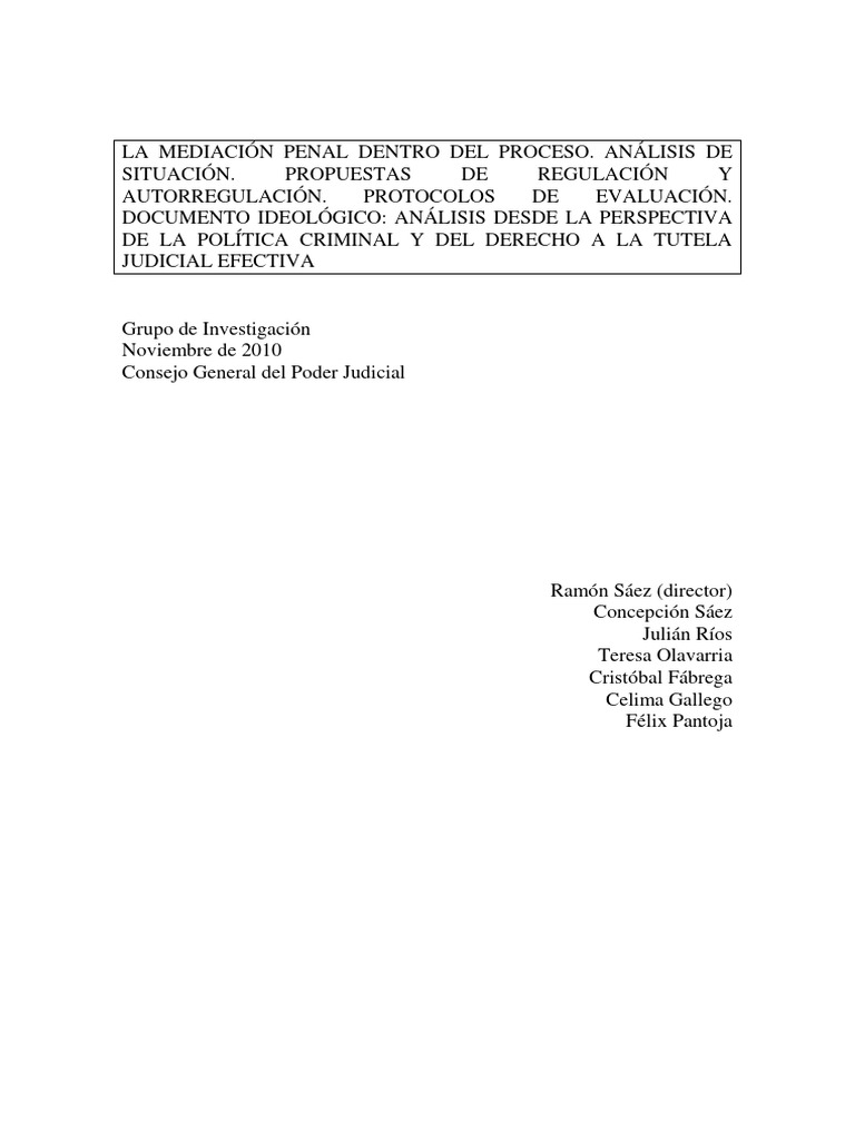 5. Documento ideológico sobre mediación penal (coordinador Ramón Sáez).