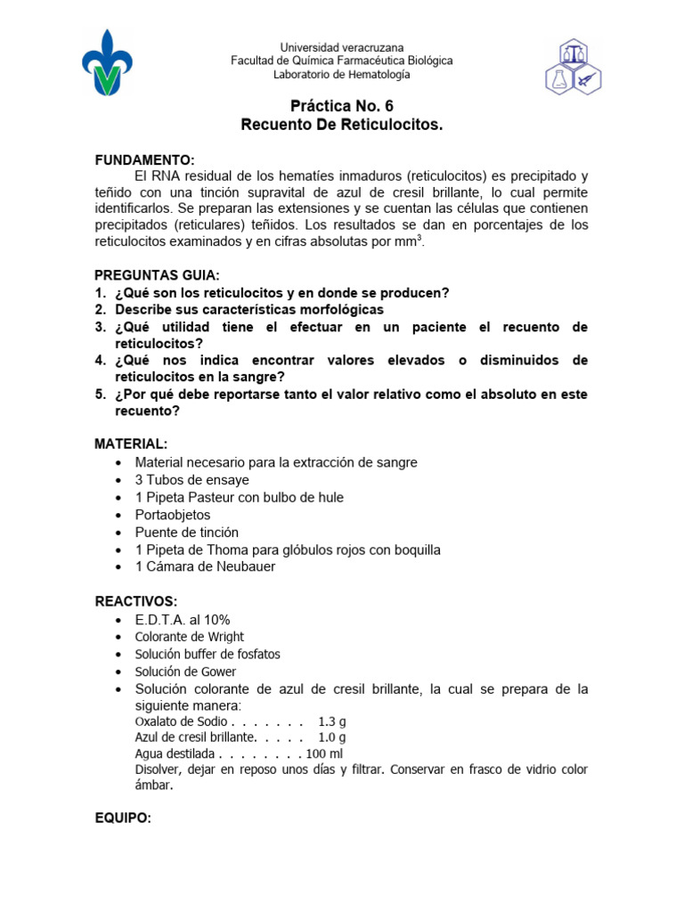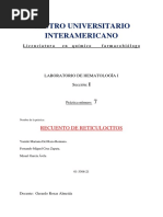 7. Efectuar un recuento de eritrocitos por mm3 y calcular el número de reticulocitos