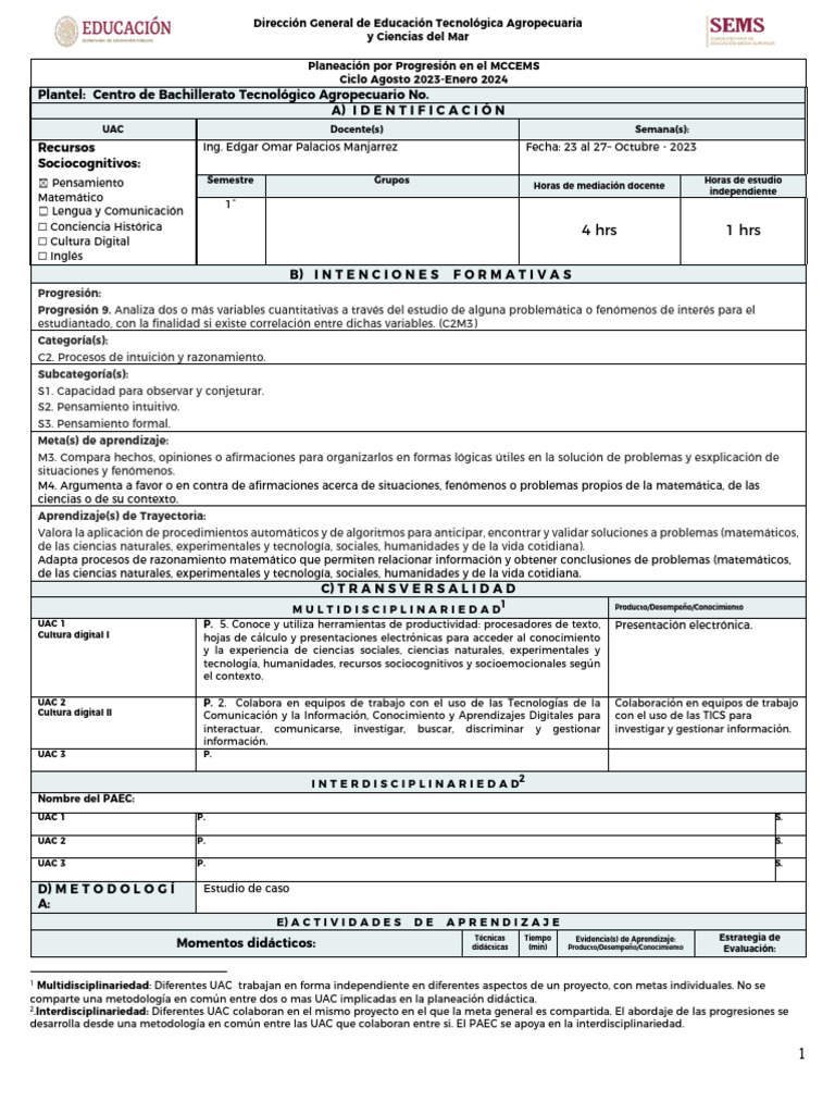 comparte una metodología en común entre dos o mas UAC implicadas en la planeación didáctica.