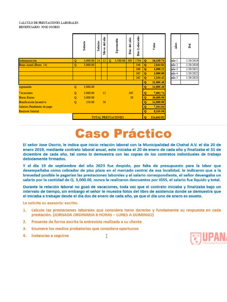 Indemnización Q 3,000.00 14 12 Q 3,500.00 365 1704 Q 16,339.73 año 1 1/20/2019