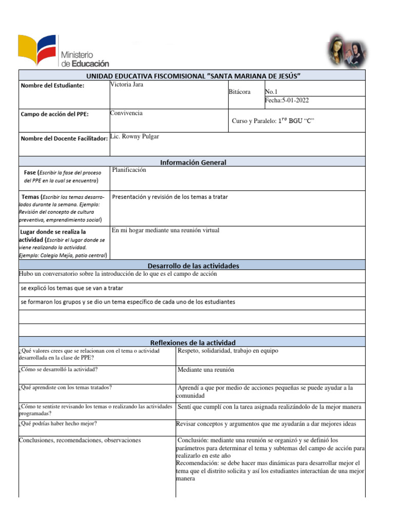 Nota: El estudiante conservará las bitácoras e ira incorporándolas en el portafolio del PPE. Las bitácoras podrán tener como anexos