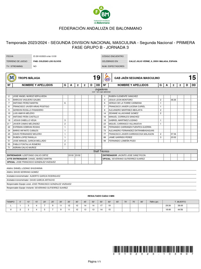 TROPS MÁLAGA 19 GAB JAÉN SEGUNDA MASCULINO 15