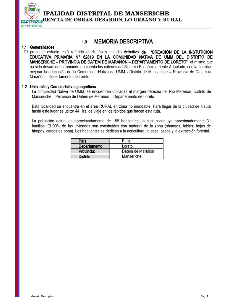 Memoria Descriptiva Pág. 1