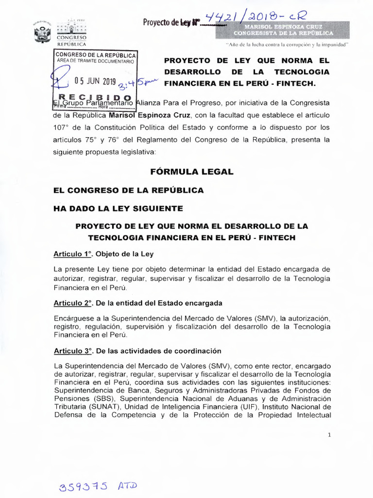 0 5 JUN 2019 ~i-tl5r' FINANCIERA EN EL PERÚ - FINTECH.