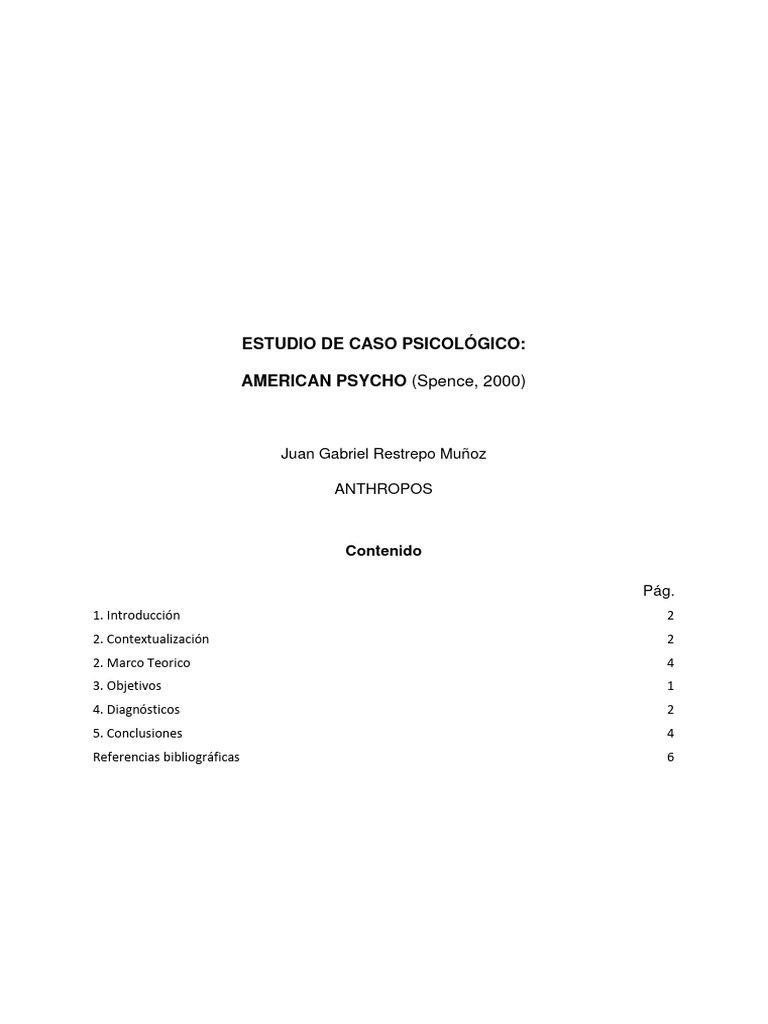 El presente estudio de caso se centra en Patrick Bateman, el protagonista de la