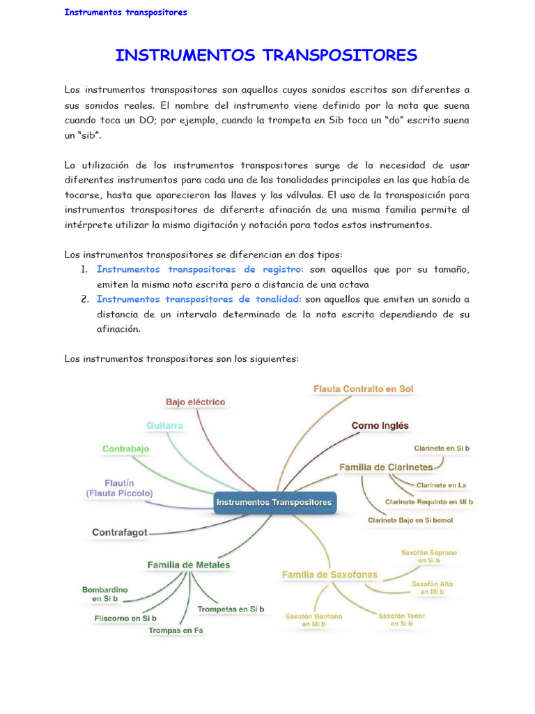 Los instrumentos transpositores son aquellos cuyos sonidos escritos son diferentes a