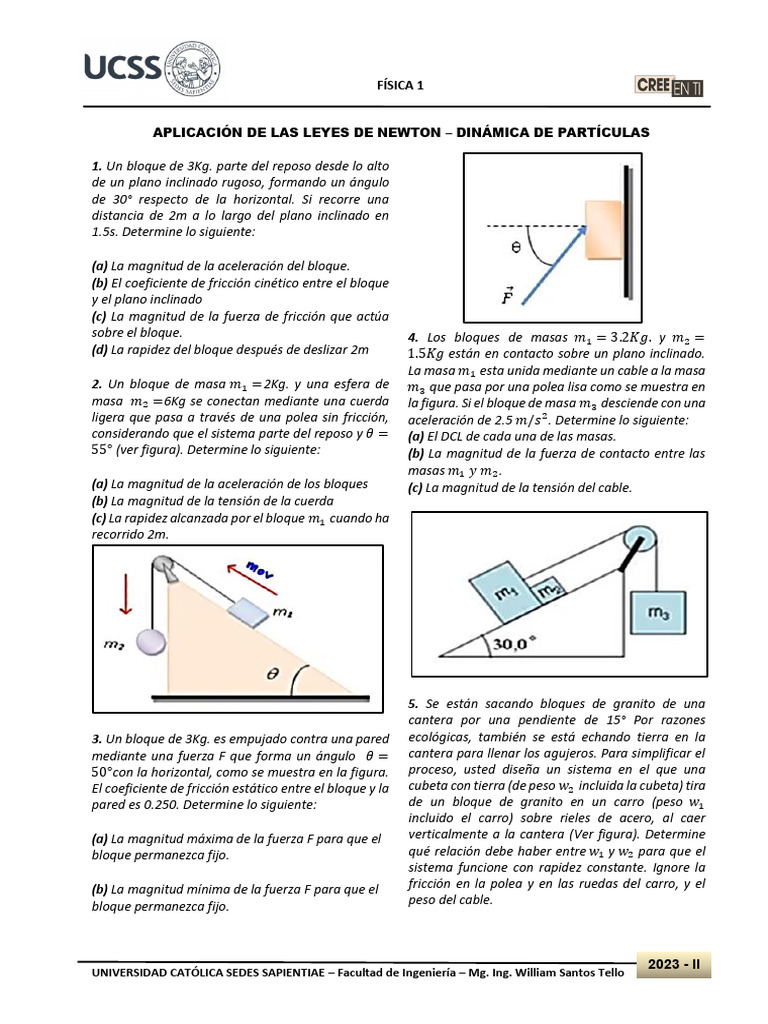 APLICACIÓN DE LAS LEYES DE NEWTON – DINÁMICA DE PARTÍCULAS
