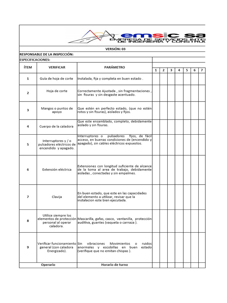 INSPECCIÓN DE PREOPERACIONAL DE CALADORA