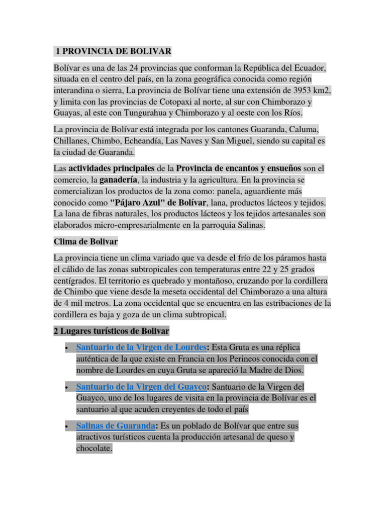 La provincia de Bolívar está integrada por los cantones Guaranda, Caluma,