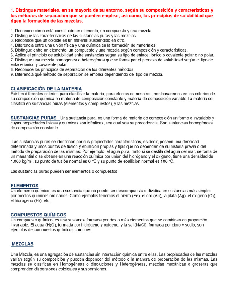 clasifica en sustancias puras (elementos y compuestos), y las mezclas.
