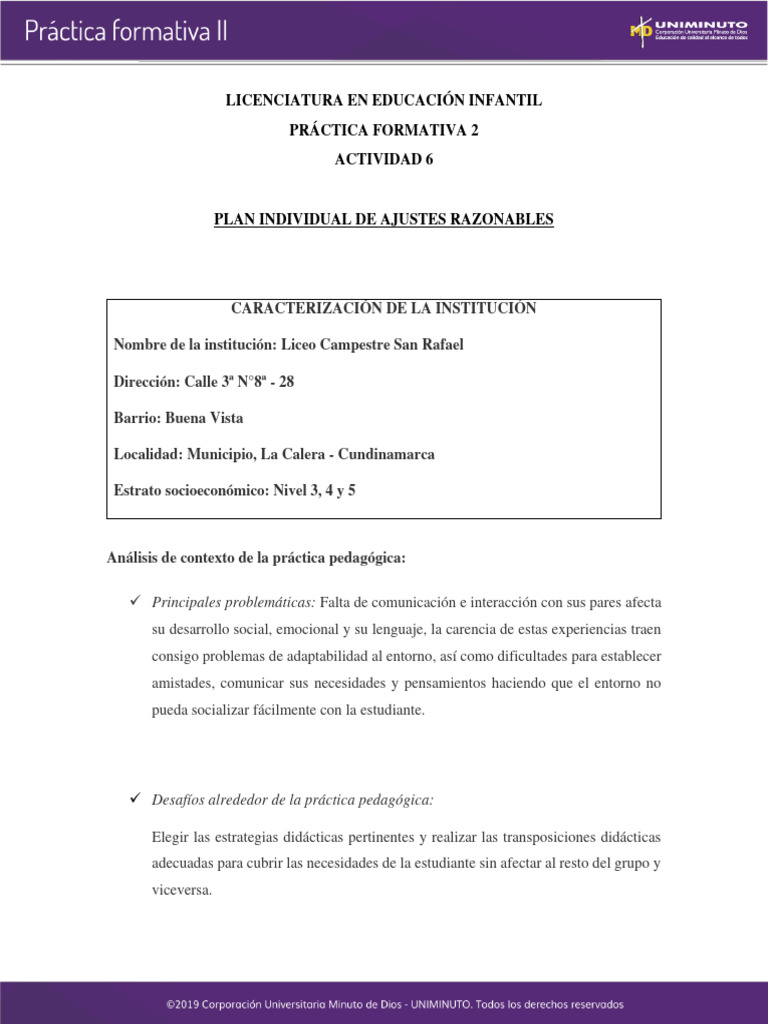 Contexto En el Liceo Campestre San Rafael ubicado en el