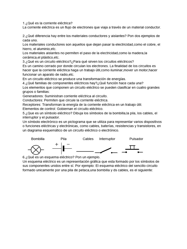 5.¿Que es un símbolo eléctrico? Dibuja los símbolos de la bombilla,la pila, los cables, el