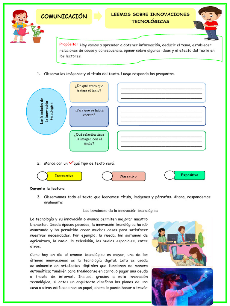 1. Observa las imágenes y el título del texto. Luego responde las preguntas.