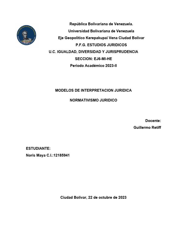 los modelos de interpretación jurídica, conceptos característicos del normativismo