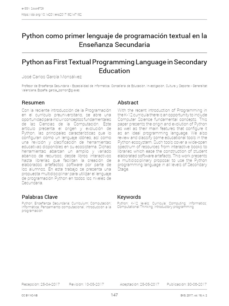 de las Ciencias de la Computación. Este paper presents the origin and evolution of Python