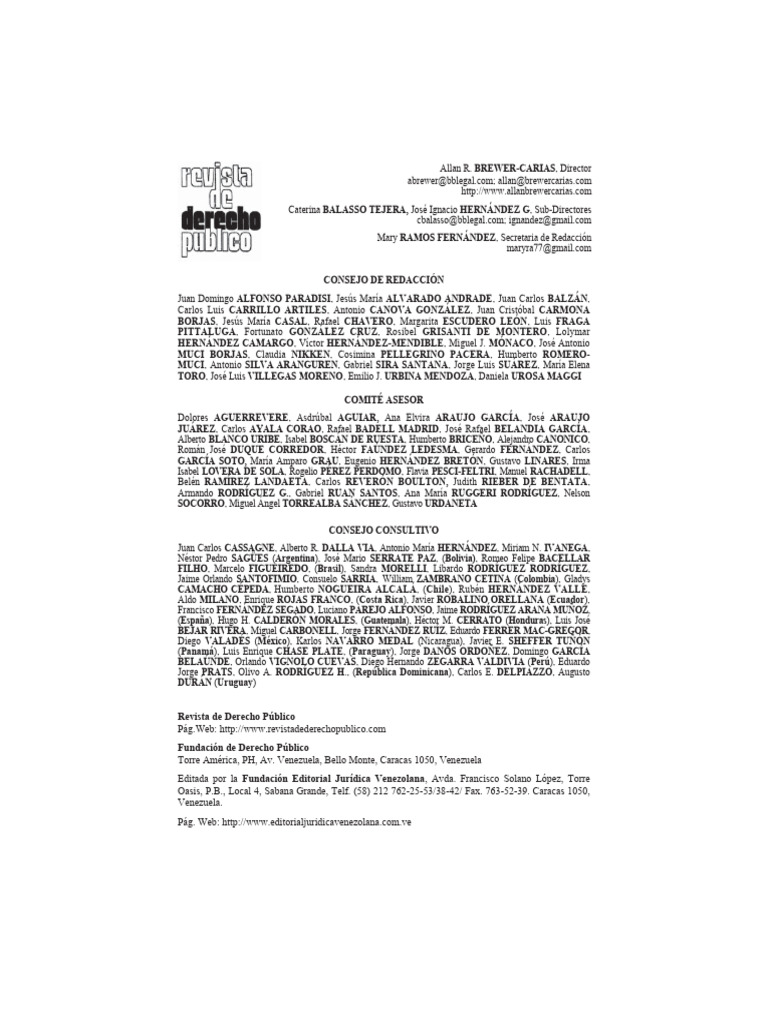 Estudios Parlamentario Fermín Toro. Así como el apoyo de la Fundación de Derecho Admi-