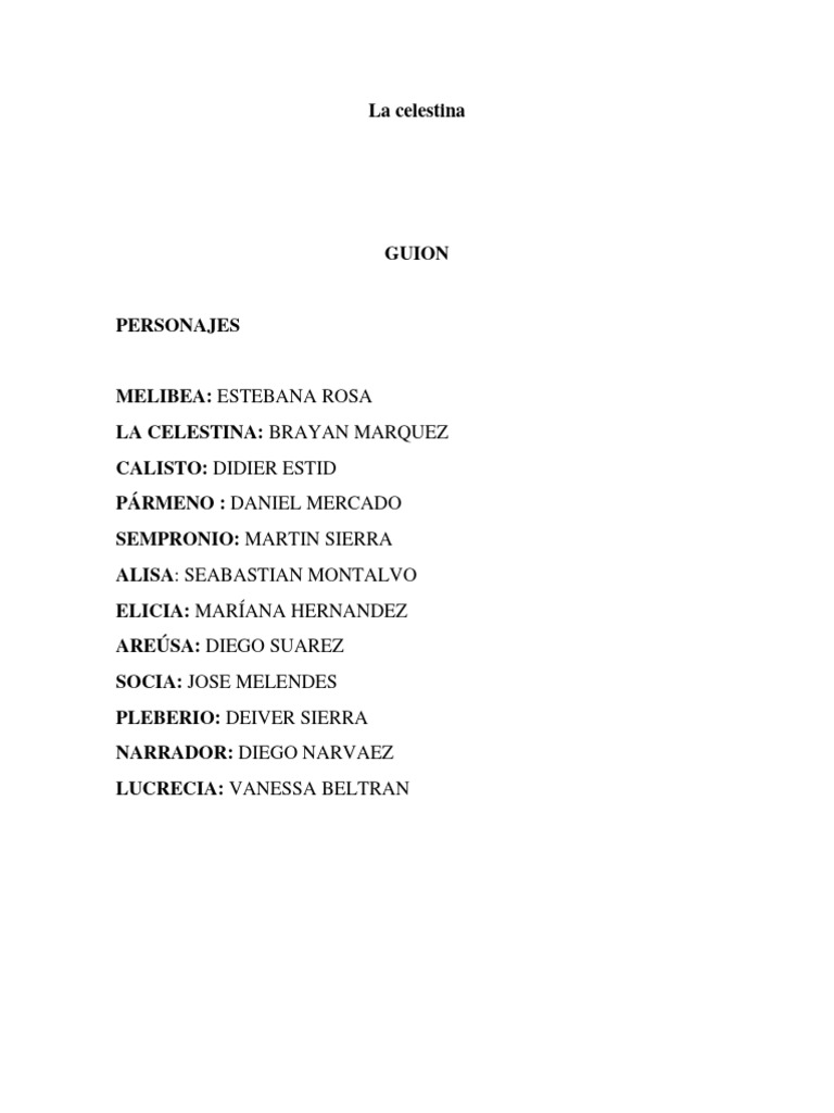 por mí a una astuta y sagaz mujer llamada Celestina, la cual, de su parte