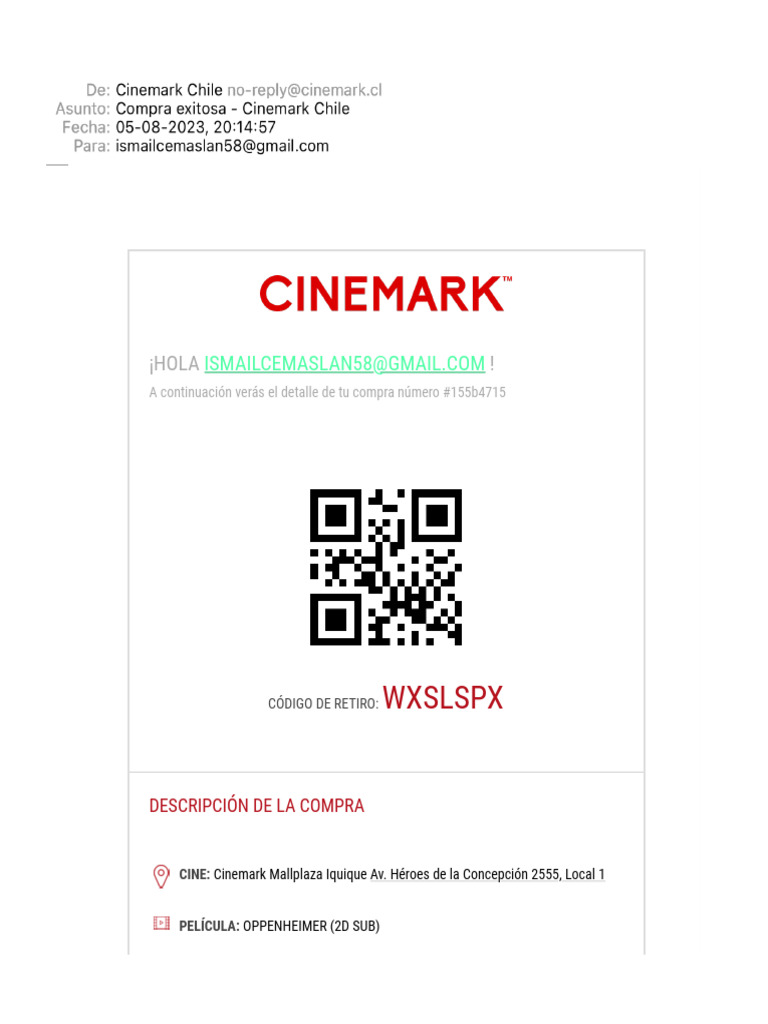 fecha de la compra, para su retiro en la confitería del cine para el cual se realizó
