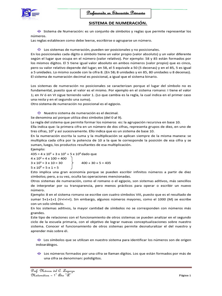 Sistema de Numeración: es un conjunto de símbolos y reglas que permite representar los