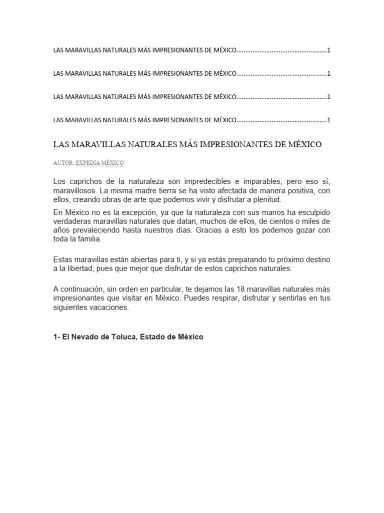 LAS MARAVILLAS NATURALES MÁS IMPRESIONANTES DE MÉXICO...................................................1