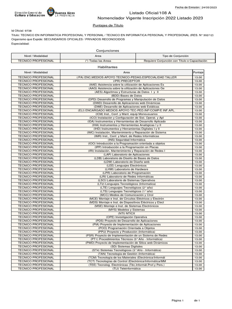 Título: TECNICO EN INFORMATICA PROFESIONAL Y PERSONAL / TECNICO EN INFORMATICA PERSONAL Y PROFESIONAL (RES. N° 302/12)