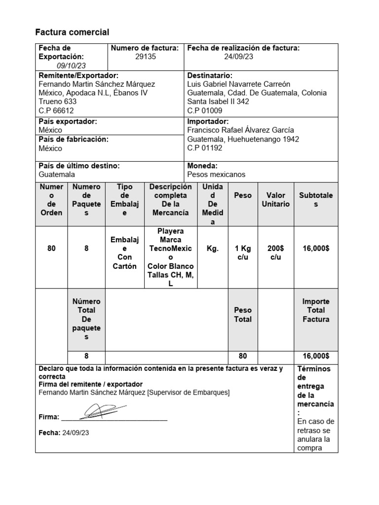 Remitente/Exportador: Destinatario: