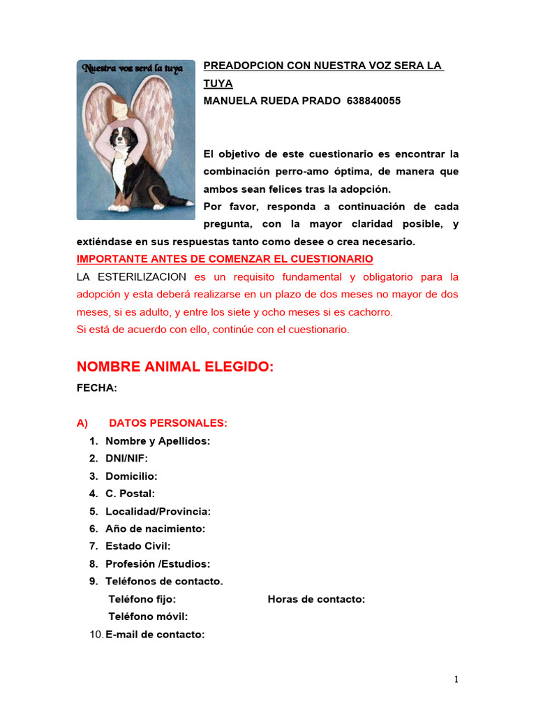 1.- ¿Por qué se decide a adoptar a un animal? ¿Con qué finalidad lo