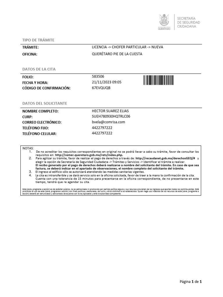 4. La cita es intransferible y se dará servicio solo en la oficina solicitada, favor de traer a la mano la confirmación de la cita.