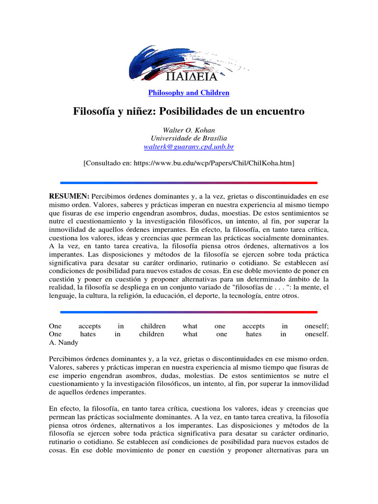 filosofía de la niñez.