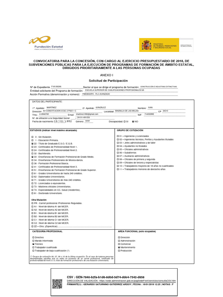 FIRMANTE(1) : GERARDO SATURNINO GUTIERREZ ARDOY | FECHA : 18/01/2019 12:25 | NOTAS : F