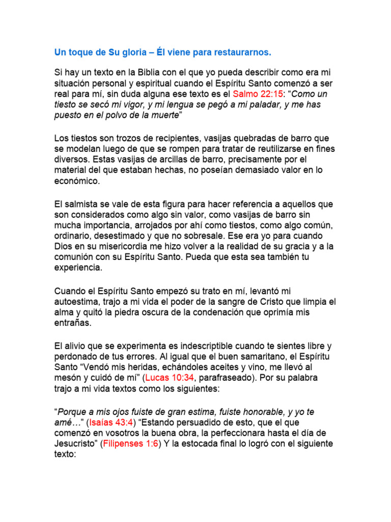 Pero su gloria, es lo que nos ministra de forma individual, lo que nos