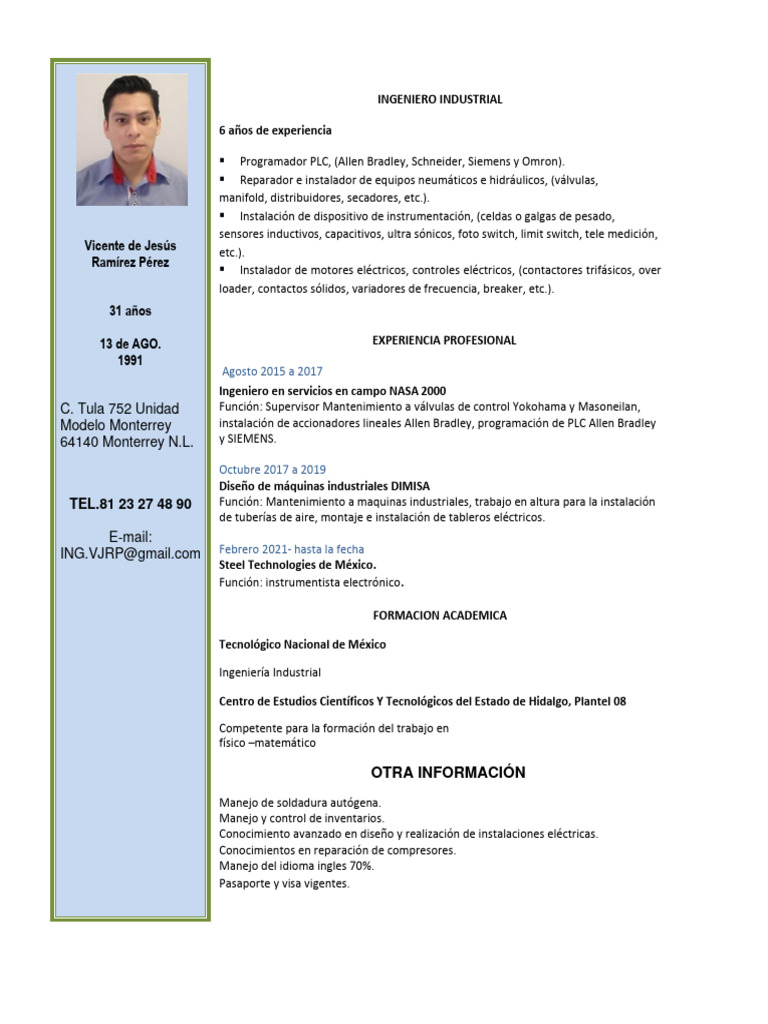 ▪ Programador PLC, (Allen Bradley, Schneider, Siemens y Omron).