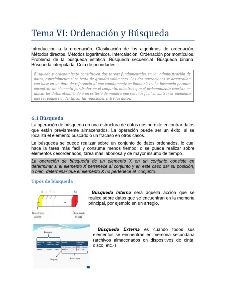 Tema VI: Ordenació n y Bú squeda