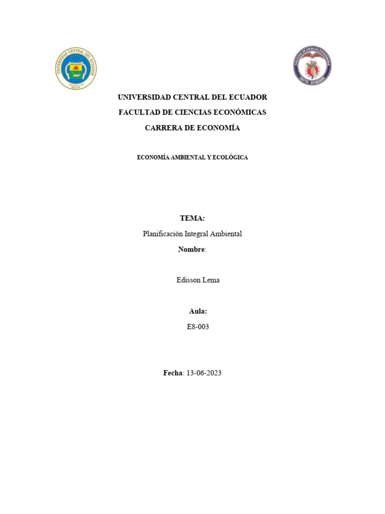 En planificación Integral Ambiental hare especial énfasis en los siguientes temas;