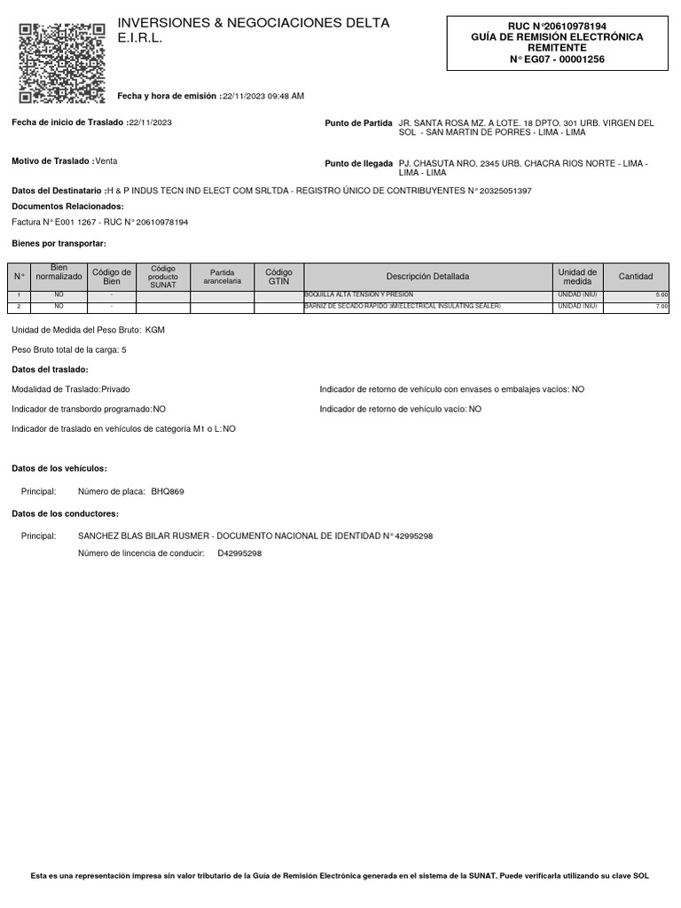 E.I.R.L. GUÍA DE REMISIÓN ELECTRÓNICA