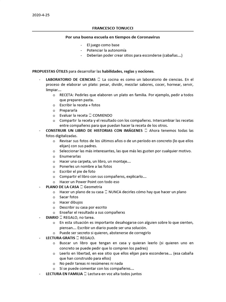CASO REAL En vez de mandar tareas de verano, mandar como propuesta que los niñxs hagan