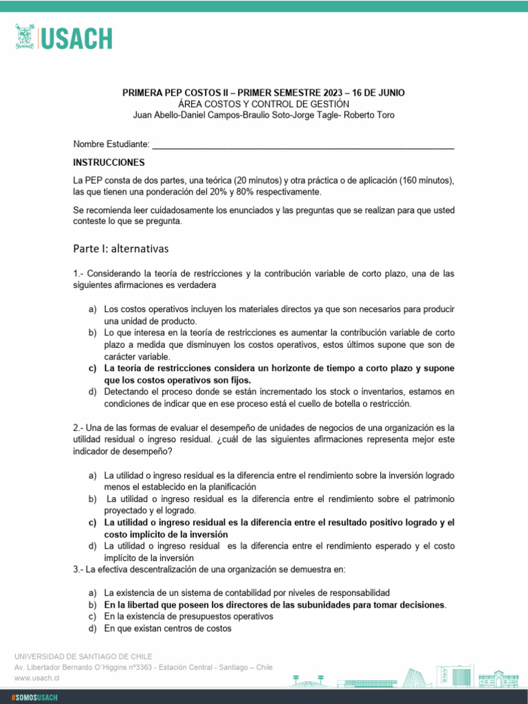 1.- Considerando la teoría de restricciones y la contribución variable de corto plazo, una de las
