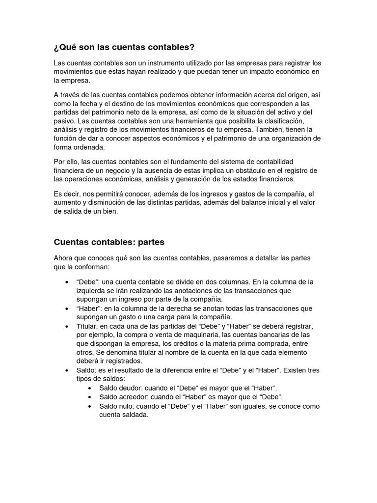Ahora que conoces qué son las cuentas contables, pasaremos a detallar las partes