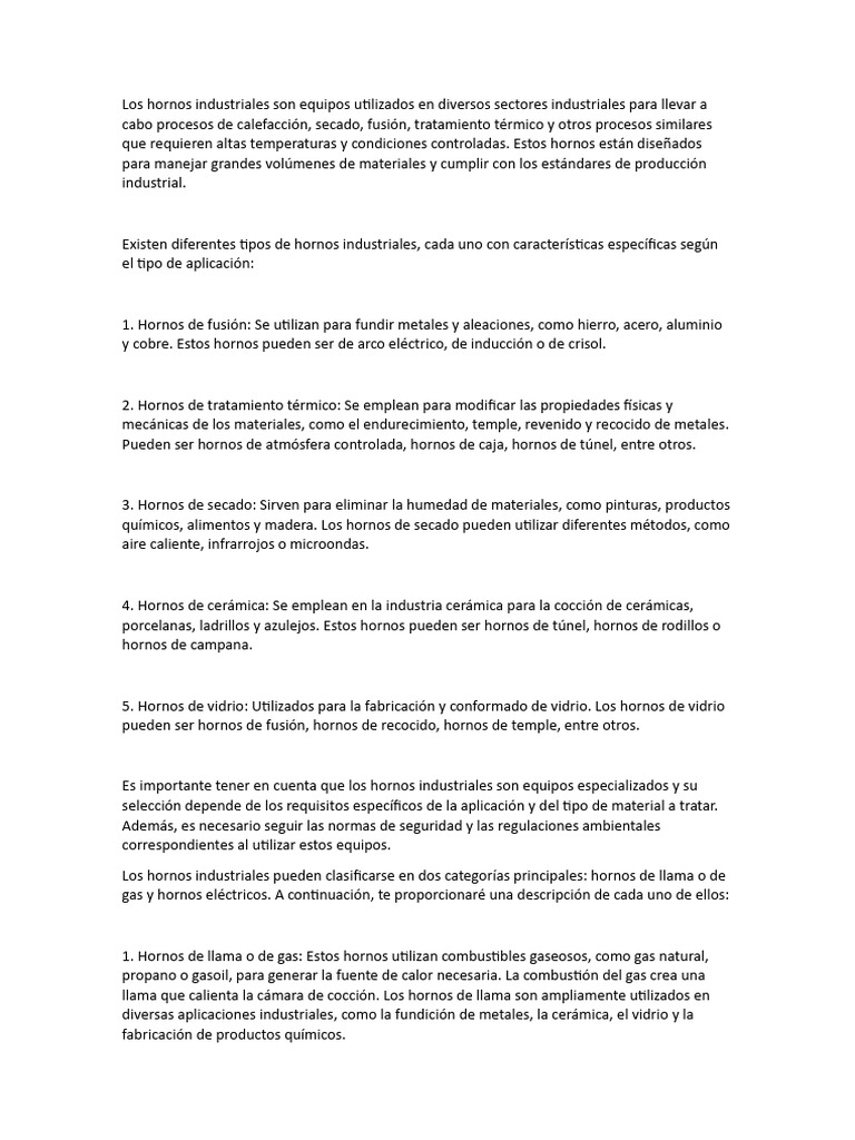 Es importante tener en cuenta que los hornos industriales son equipos especializados y su