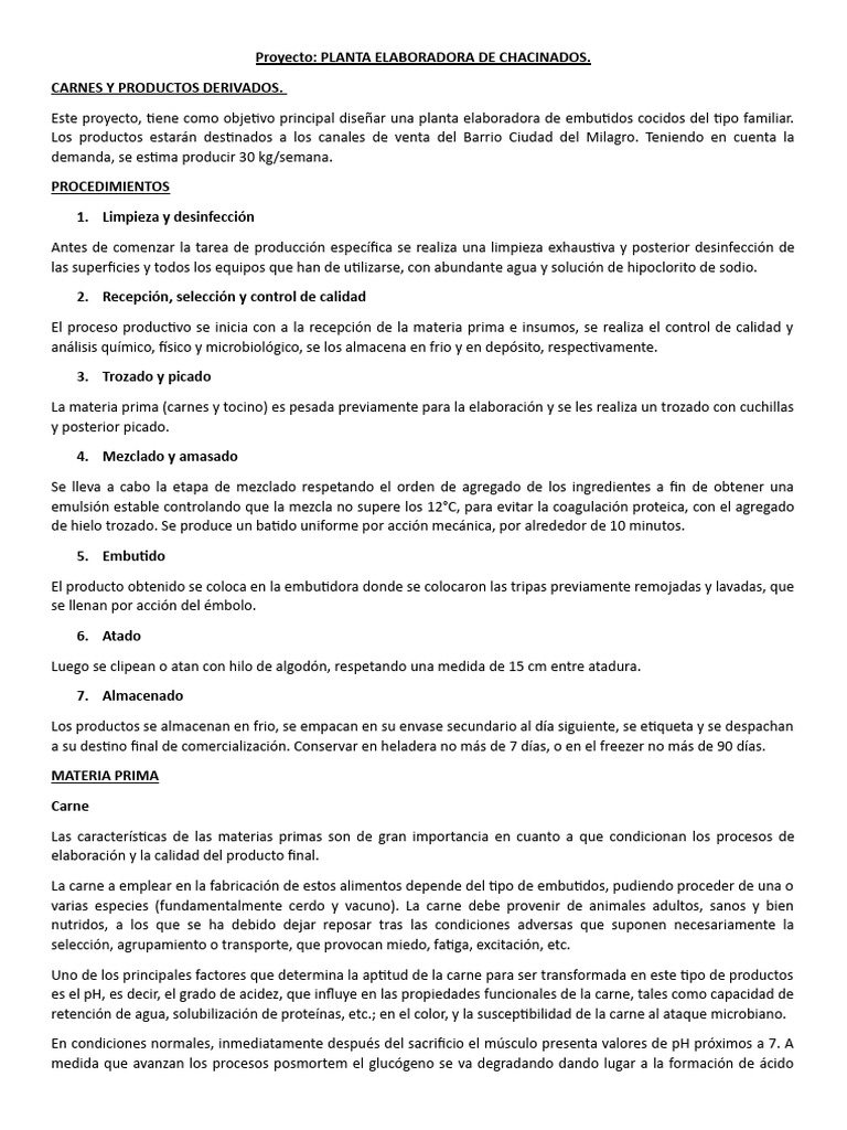 Proyecto: PLANTA ELABORADORA DE CHACINADOS.