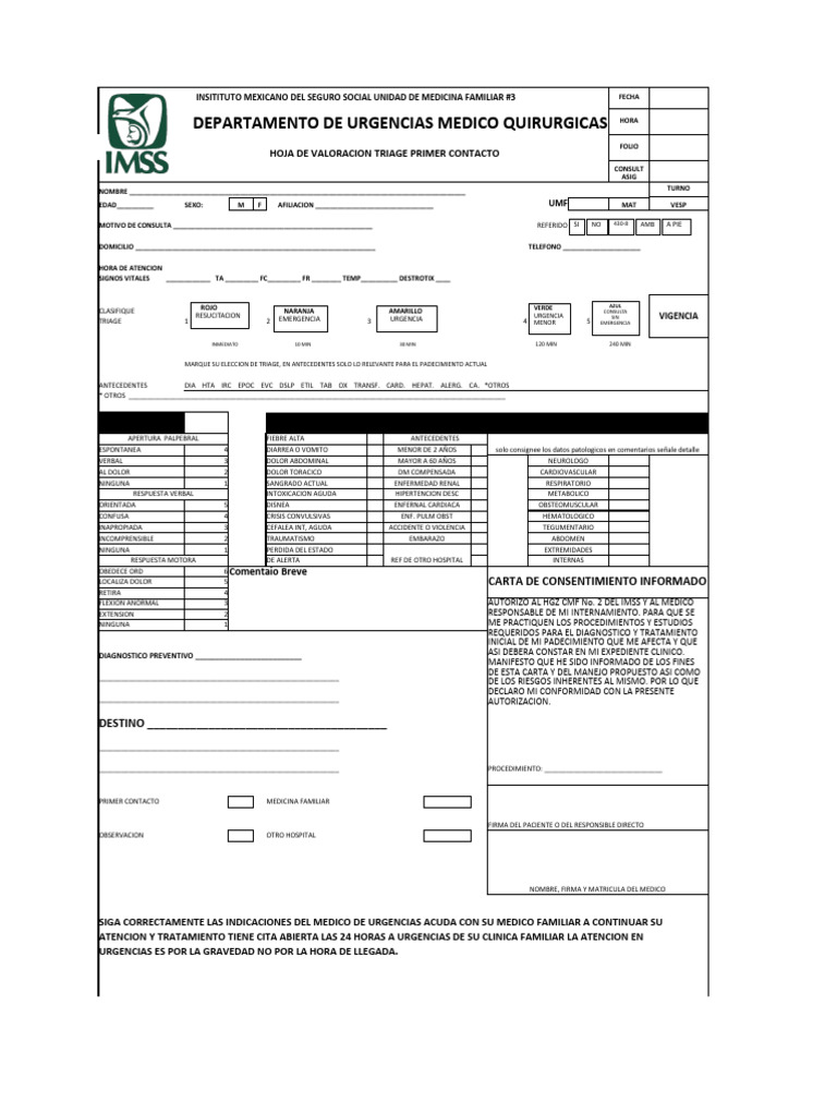 LA NOTA MEDICA INICIAL DE URGENCIAS DEBE SER LLENADO DE ACUERDO A