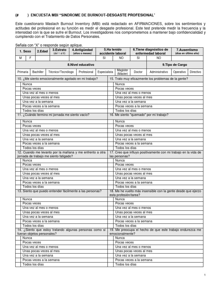 (# ) ENCUESTA MBI “SINDROME DE BURNOUT-DESGASTE PROFESIONAL”