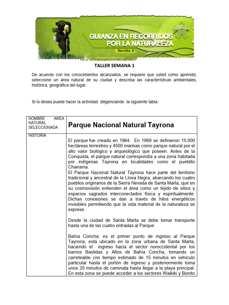 seleccione un área natural de su ciudad y describa las características ambientales,