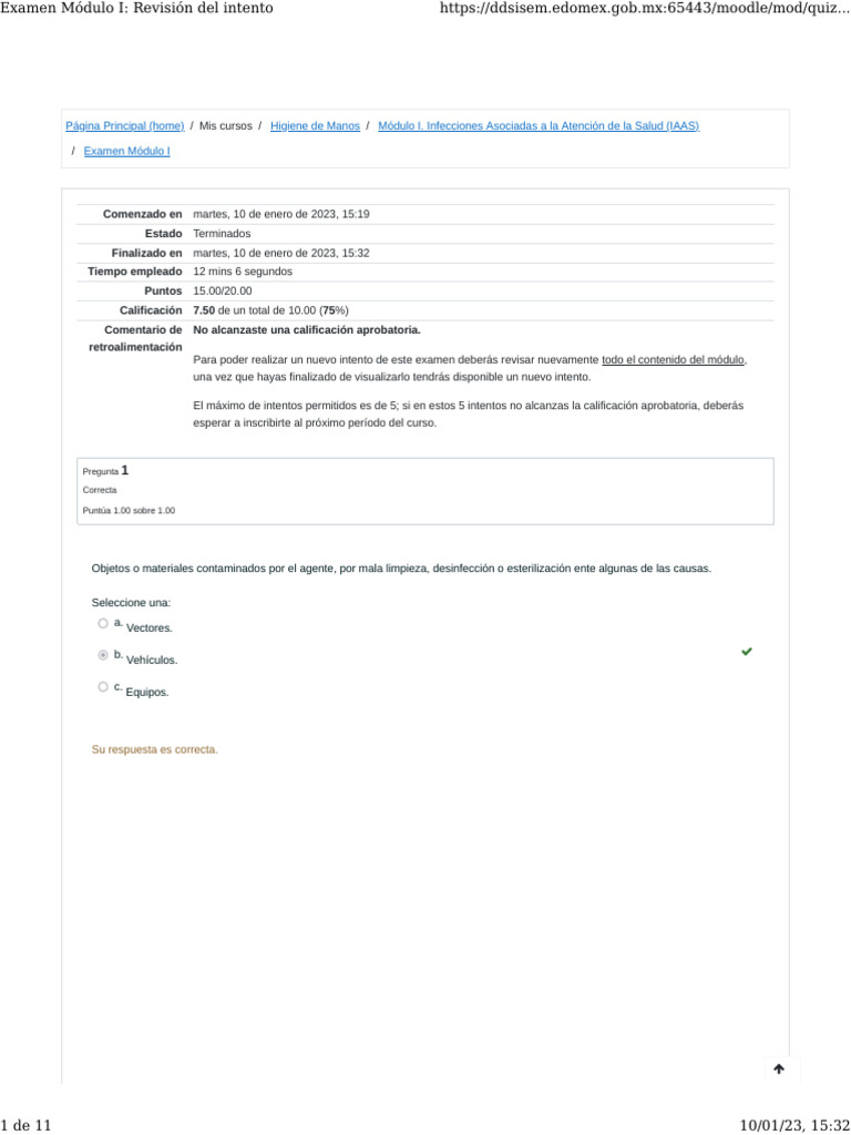 Examen Módulo I: Revisión del intento https://ddsisem.edomex.gob.mx:65443/moodle/mod/quiz...